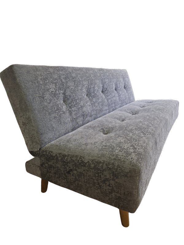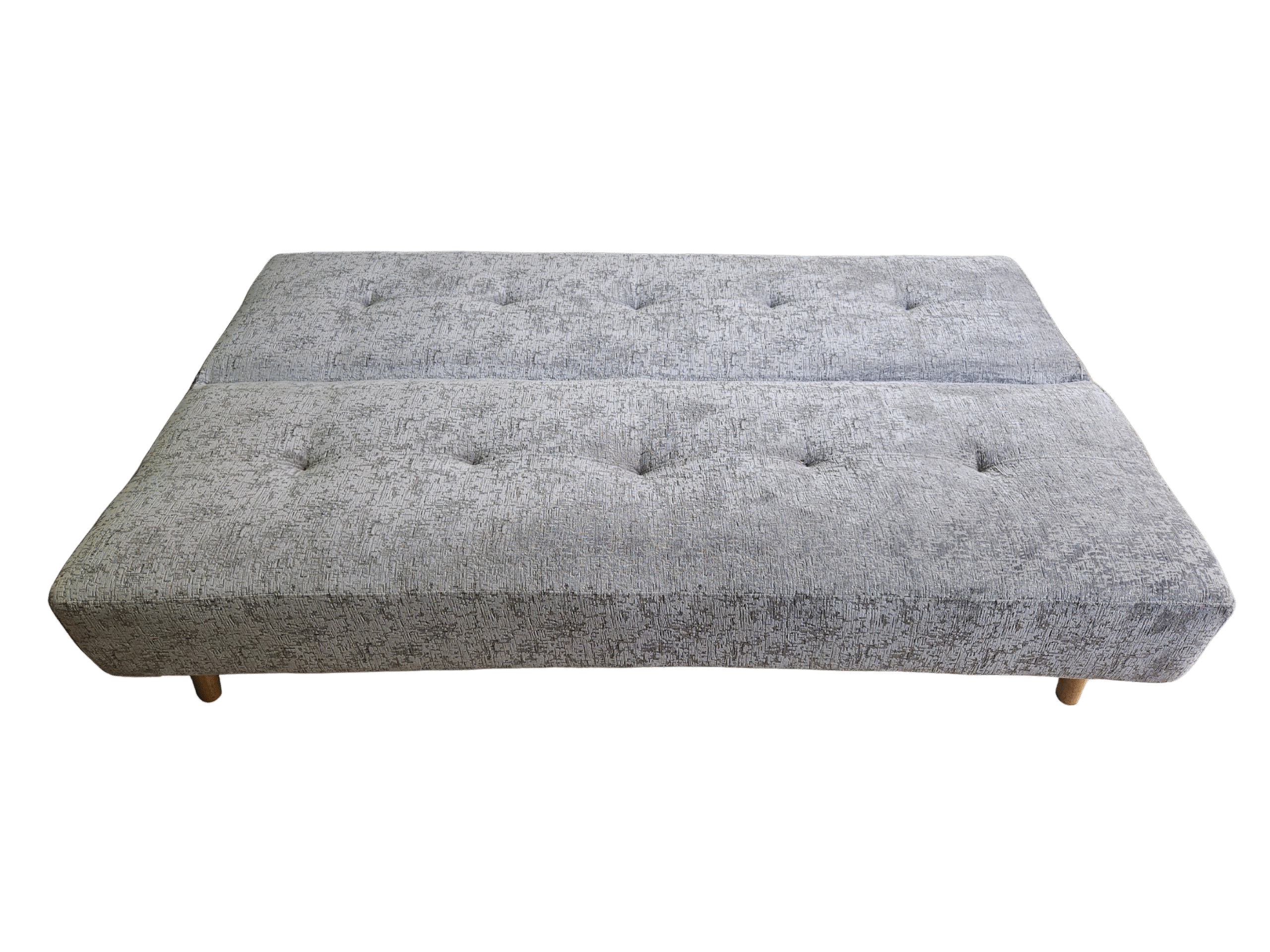 Este sofá es una pieza elegante y funcional, ideal para salas de estar modernas que buscan un mueble amplio y de diseño limpio. Su estructura es de una sola pieza, destacando por su longitud y sus líneas rectas y bien definidas. La tapicería, en una tela de color gris claro, es versátil y fácil de combinar con cualquier esquema de colores. Los cojines de asiento y de respaldo son rectos, lo que resalta la estética contemporánea del mueble. El diseño destaca por su ligereza visual, lograda gracias a sus patas de metal delgadas y cromadas, que le dan un aspecto sofisticado y flotante